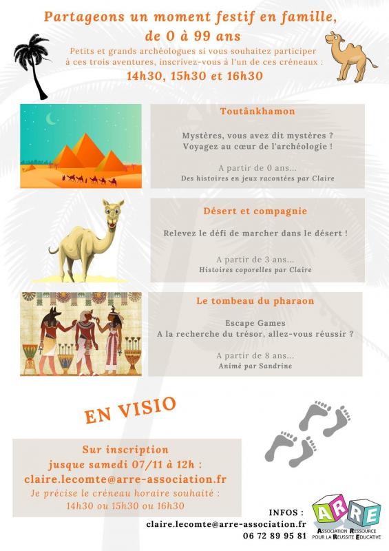 Partageons un moment festif en famille, de 0 à 99 ans, petits et grands archéologues: si vous souhaitez participer à ces 3 aventures, inscrivez-vous au(x) créneau(x) souhaité(s):