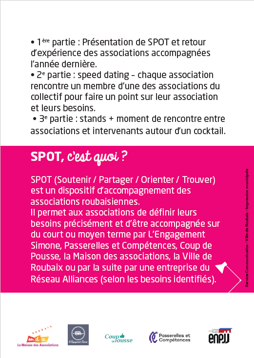 Nous avons le plaisir de vous inviter à la soirée "ressource" pour l'accompagnement des associations roubaisiennes !