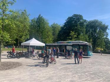 Un bus itinérant pour apprendre à réparer les vélos.