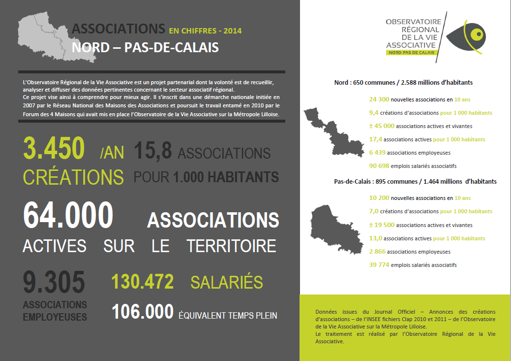 Des sources telles que les données INSEE ou les créations d’associations nous permettent d’alimenter un tableau de bord mis régulièrement à jour pour comprendre les grandes tendances territoriale. Ces sources brutes nécessitent un travail de reconditionnement et d’interprétation, et donnent lieu à des documents dont le but est d’être appropriés par les acteurs locaux. Par ailleurs, ce sont ces analyses de l’environnement local qui permettent de légitimer les prises de paroles de la MDA lorsque celle-ci interpelle, à partir de son expertise du champ associatif roubaisien, les acteurs politiques dans le but de souligner des points de vigilances et des situations difficiles que l’on voit apparaitre.
