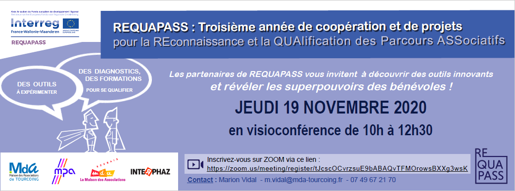 Depuis 2018 et pour une durée de 4 années, le projet REQUAPASS s’intéresse à la reconnaissance des compétences acquises et développées par les bénévoles et volontaires au sein du territoire transfrontalier des Hauts de France et de la Wallonie.