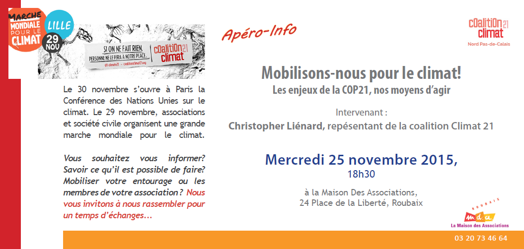 La page facebook de Coalition Climat 21 Nord Pas de Calais https://www.facebook.com/coalitionclimat21npdc/?fref=ts