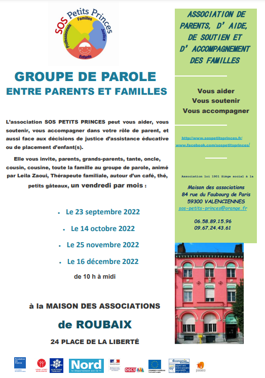 L'association SOS Petits Princes propose des groupes de parole entre parents et familles.