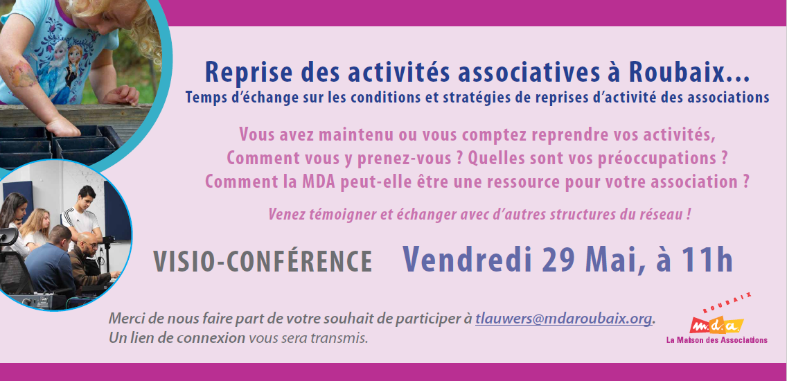 La Maison Des Associations vous propose d'échanger en visio-conférence entre associations autour des conditions de reprise / poursuite des activités de chacun.