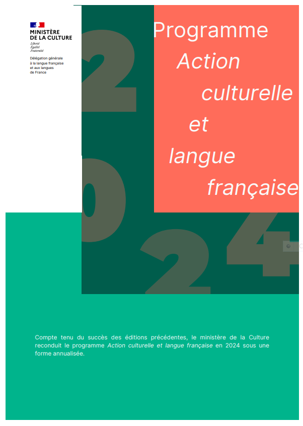 Ce programme, géré par la délégation générale à la langue française et aux langues de France (DGLFLF) du ministère de la Culture, vise à contribuer à la réduction des inégalités d’accès à la langue française et à la culture à travers des projets culturels ou artistiques. Ses objectifs sont ainsi :