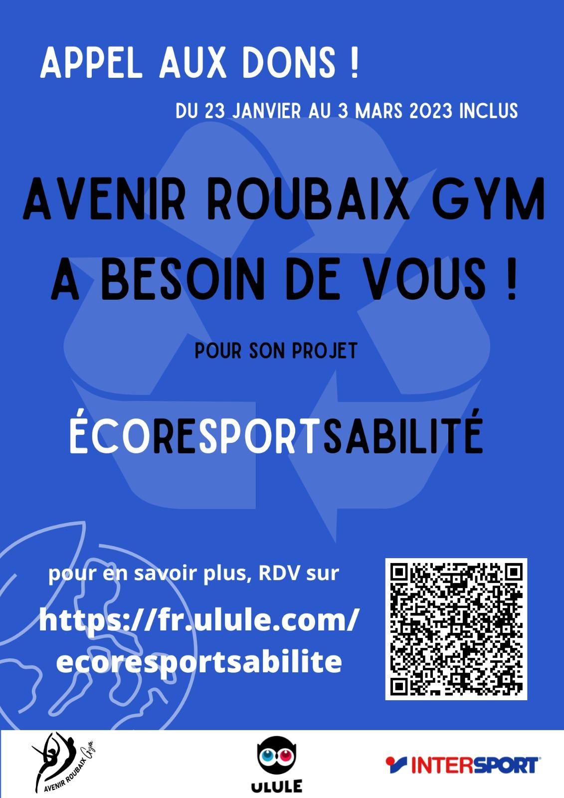 Le club Avenir Roubaix Gym a lancé son projet depuis septembre 2022 pour la saison 2022/2023 : Eco-ReSportsabilité en lien avec l'environnement.