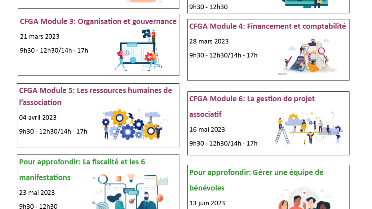 Le Certificat de Gestion de la Vie Associative et des modules complémentaires vous sont proposés.