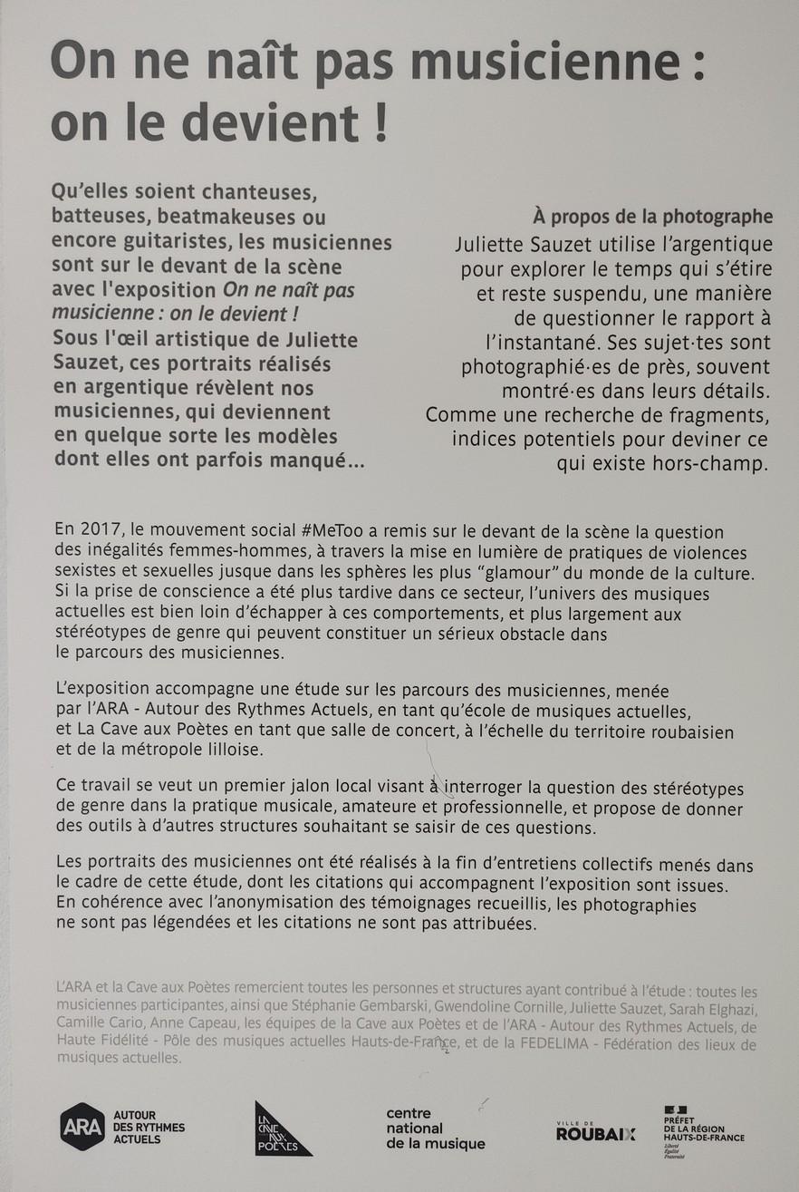 Le 8 mars est la journée internationale des droits des femmes. Cette journée, officialisée en 1977 par les Nations Unies, rappelle l'importance de la lutte pour l'égalité homme-femme. La MDA participe au programme des partenaires du Réseau Femmes de Roubaix. Nous accueillons la très belle exposition réalisée l'année dernière par les associations l'ARA et La Cave au Poètes "On ne naït pas musicienne on le devient"