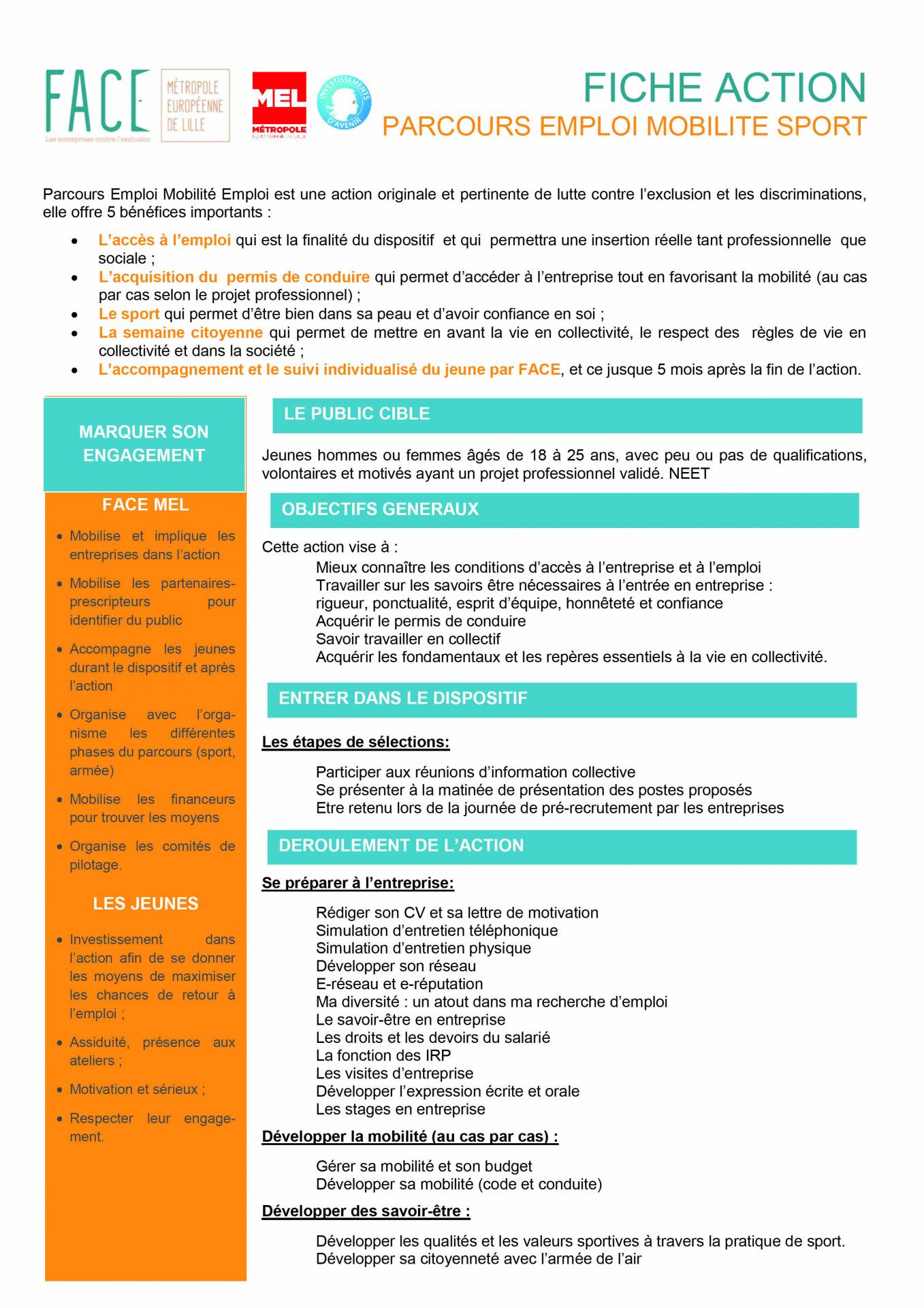- L’accompagnement et le suivi individualisé du jeune par FACE, et ce jusque 5 mois après la fin de l’action.