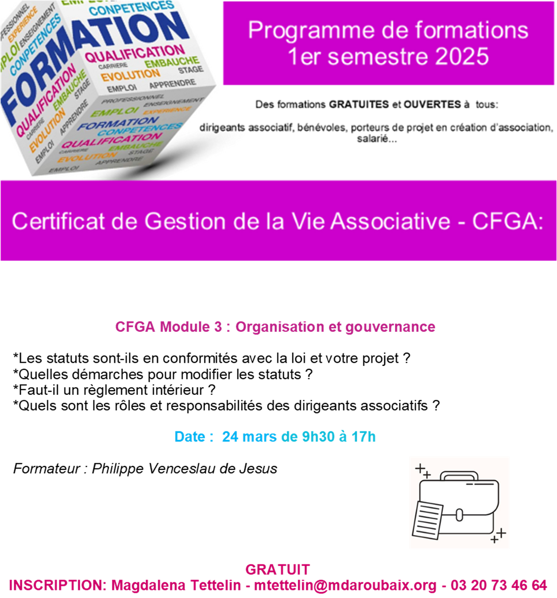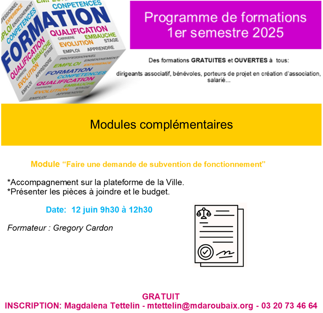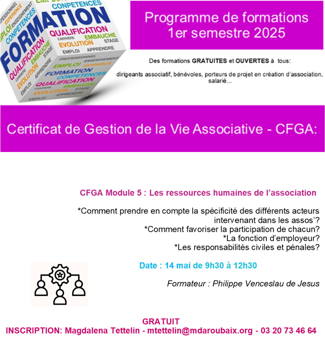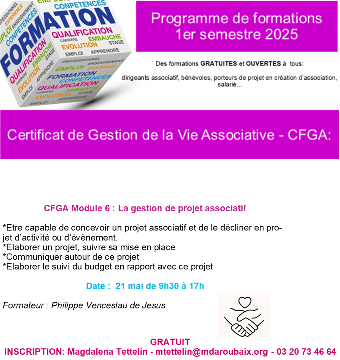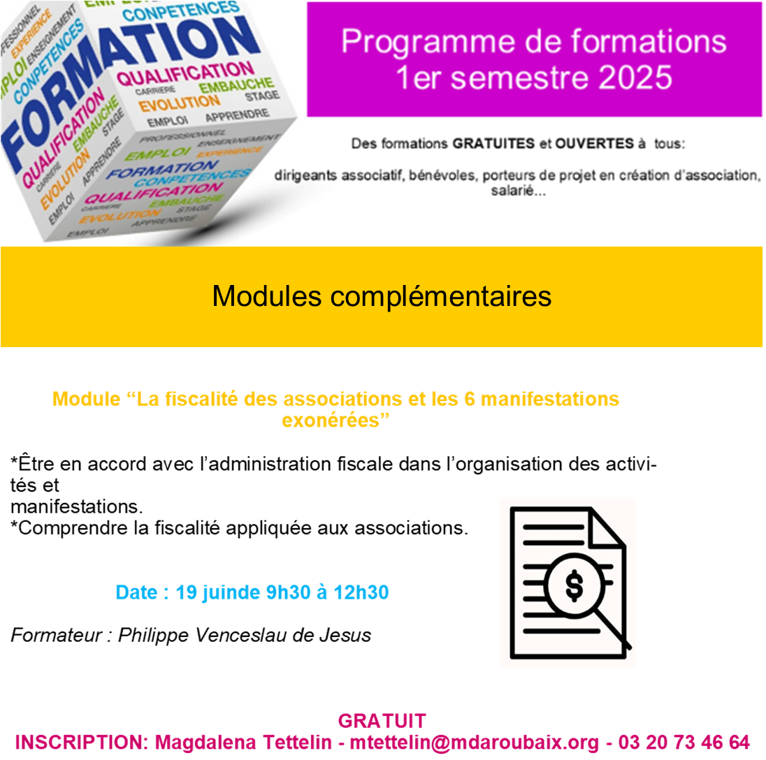 Informations et inscription: Magdalena Tettelin - 03 20 73 46 64 - mtettelin@mdaroubaix.org