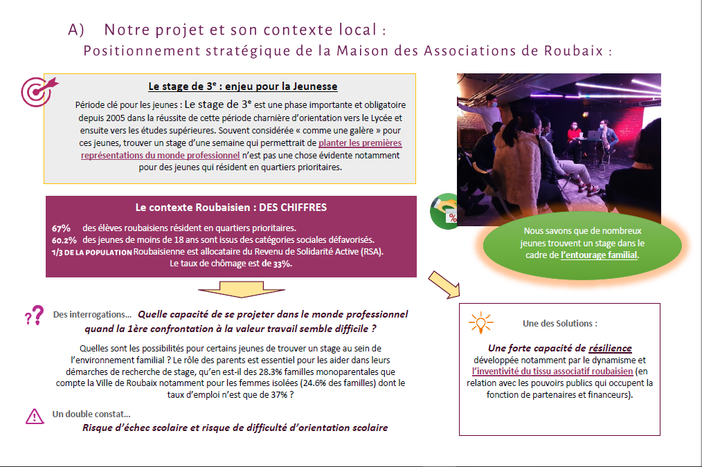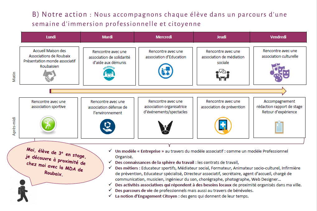 Nous organisons chaque année des stages d'observation et de découverte des métiers au sein des associations pour permettre une immersion professionnelle et citoyenne des jeunes roubaisiens :